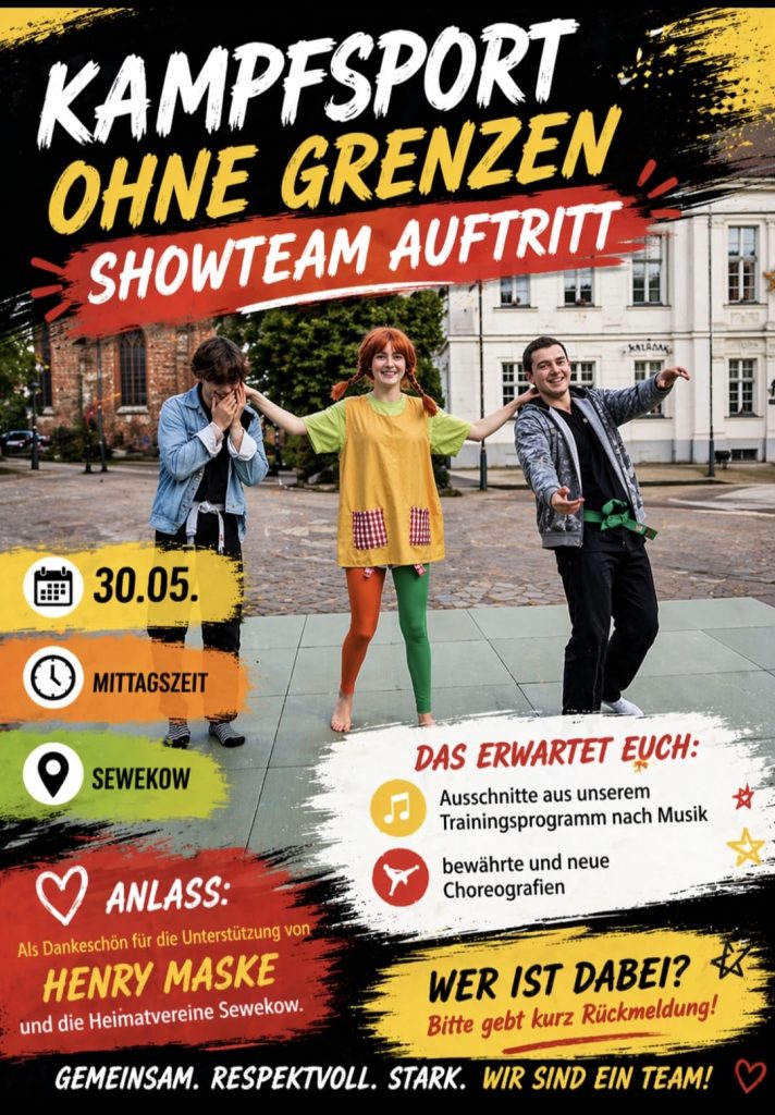 Als Dankeschön für die finanzielle Unterstützung von Herny Maske, tritt unser Show Team mit einer Vorführung in Sewekow mittags auf.